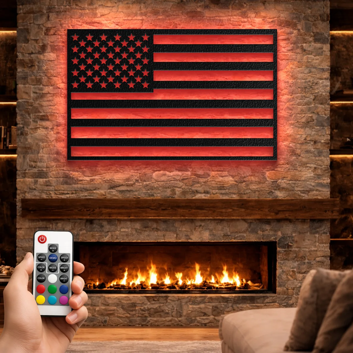 Elevate your American Flag Metal Wall Art with our optional RGB LED lighting. Control the ambiance with a remote, choosing from a spectrum of colors to perfectly match your mood or occasion. Create a vibrant display or a subtle, patriotic glow that truly brings your space to life.