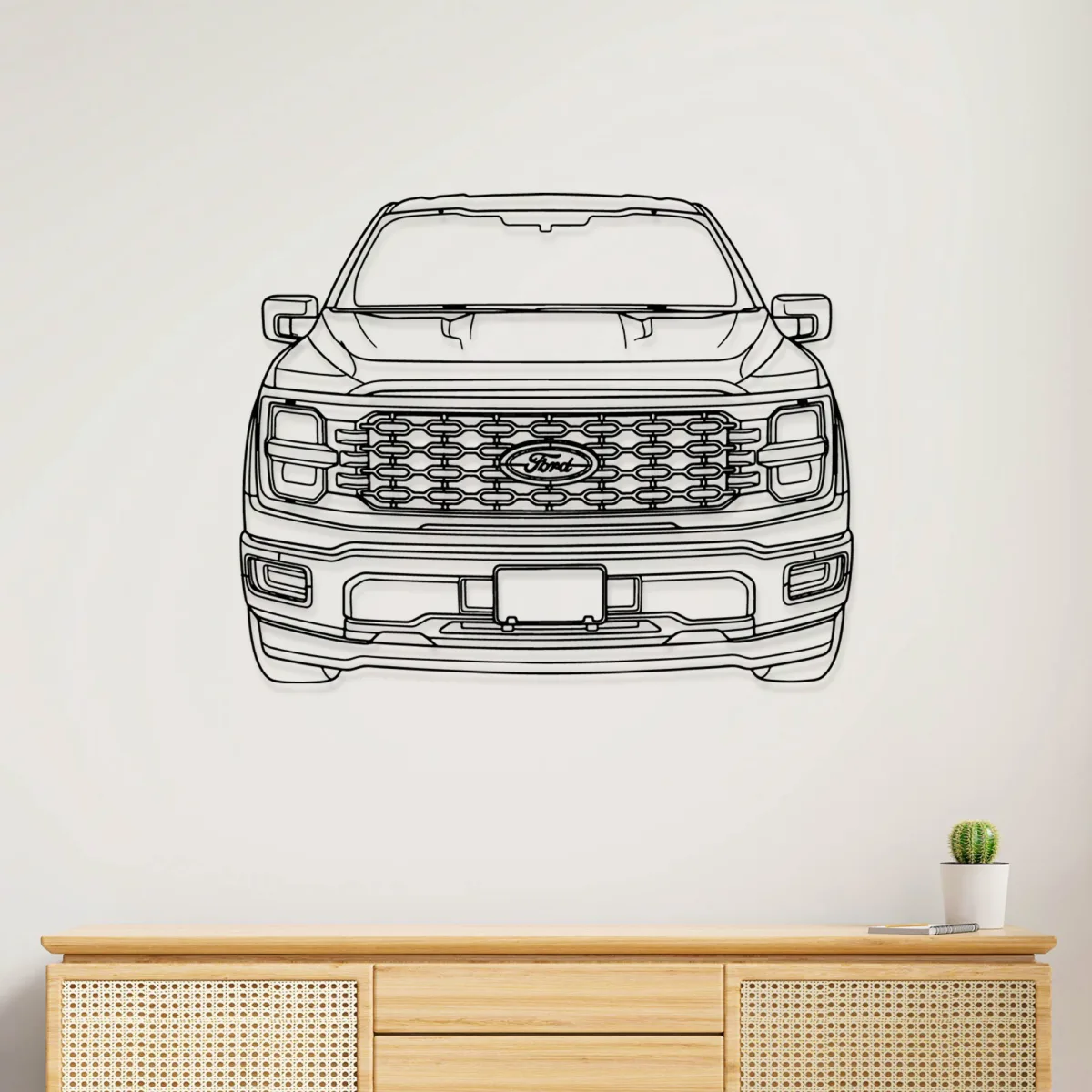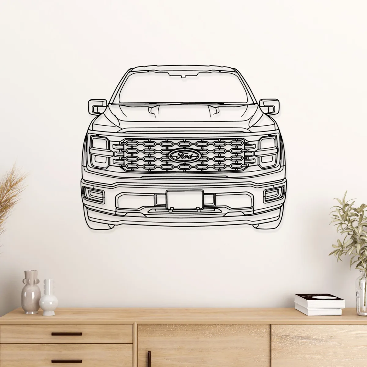 - 🎨 Sleek & Modern Design: The minimalist line art beautifully captures the distinctive front profile of the Ford F150, offering a sophisticated touch to your automotive collection.